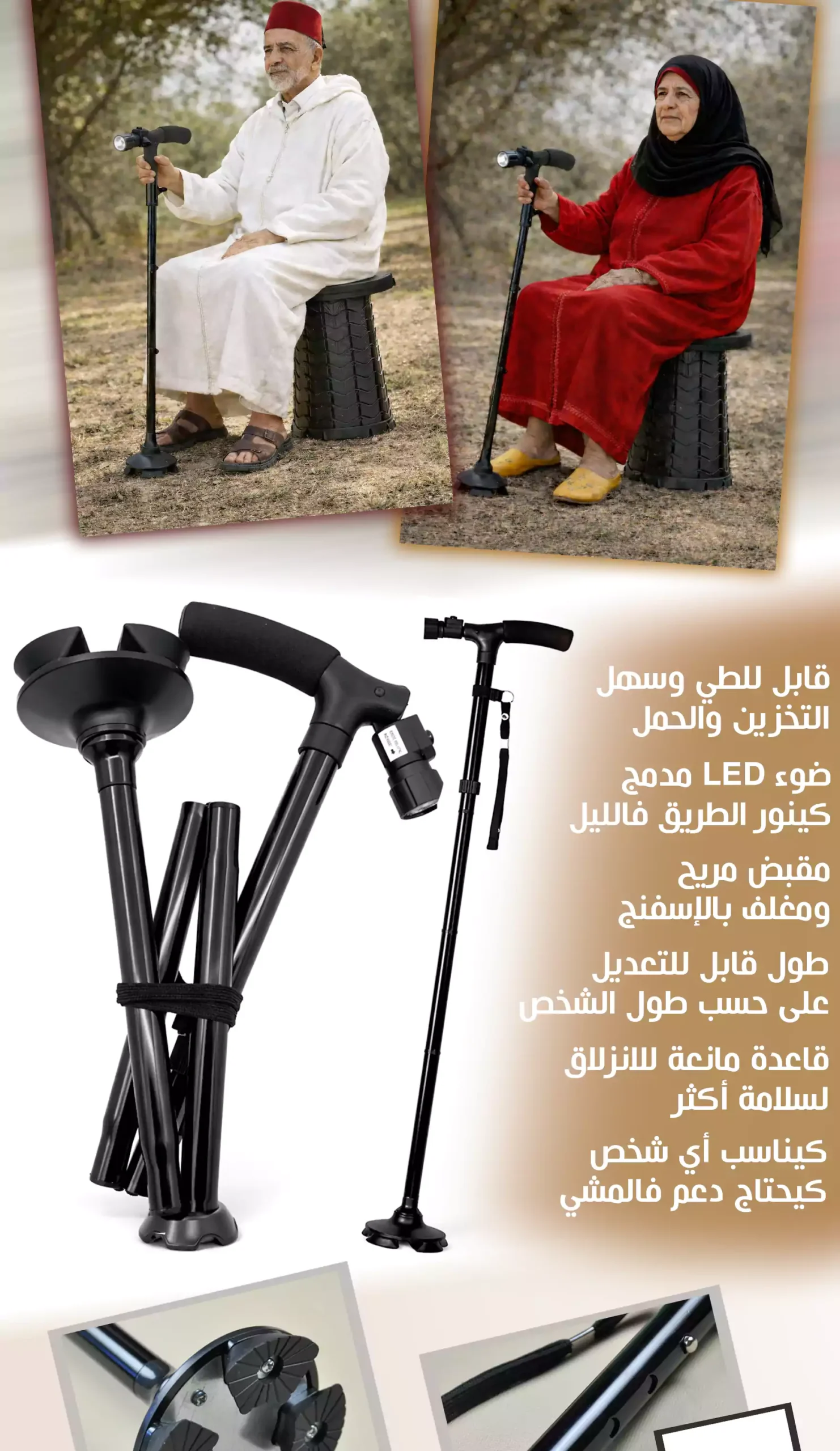 باك الراحة والأمان لكبار السن الكرسي والعكاز المحمول
