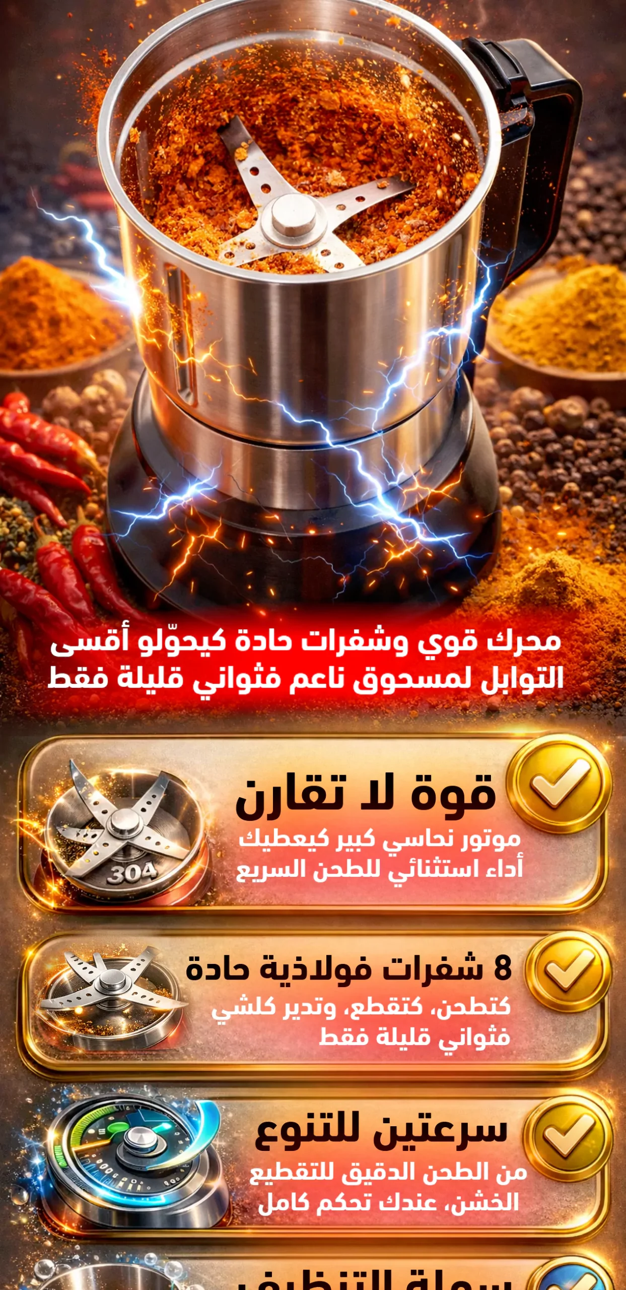 مطحنة كهربائية قوية الحل الأمثل لطحن الحبوب والتوابل بسرعة وسهولة!