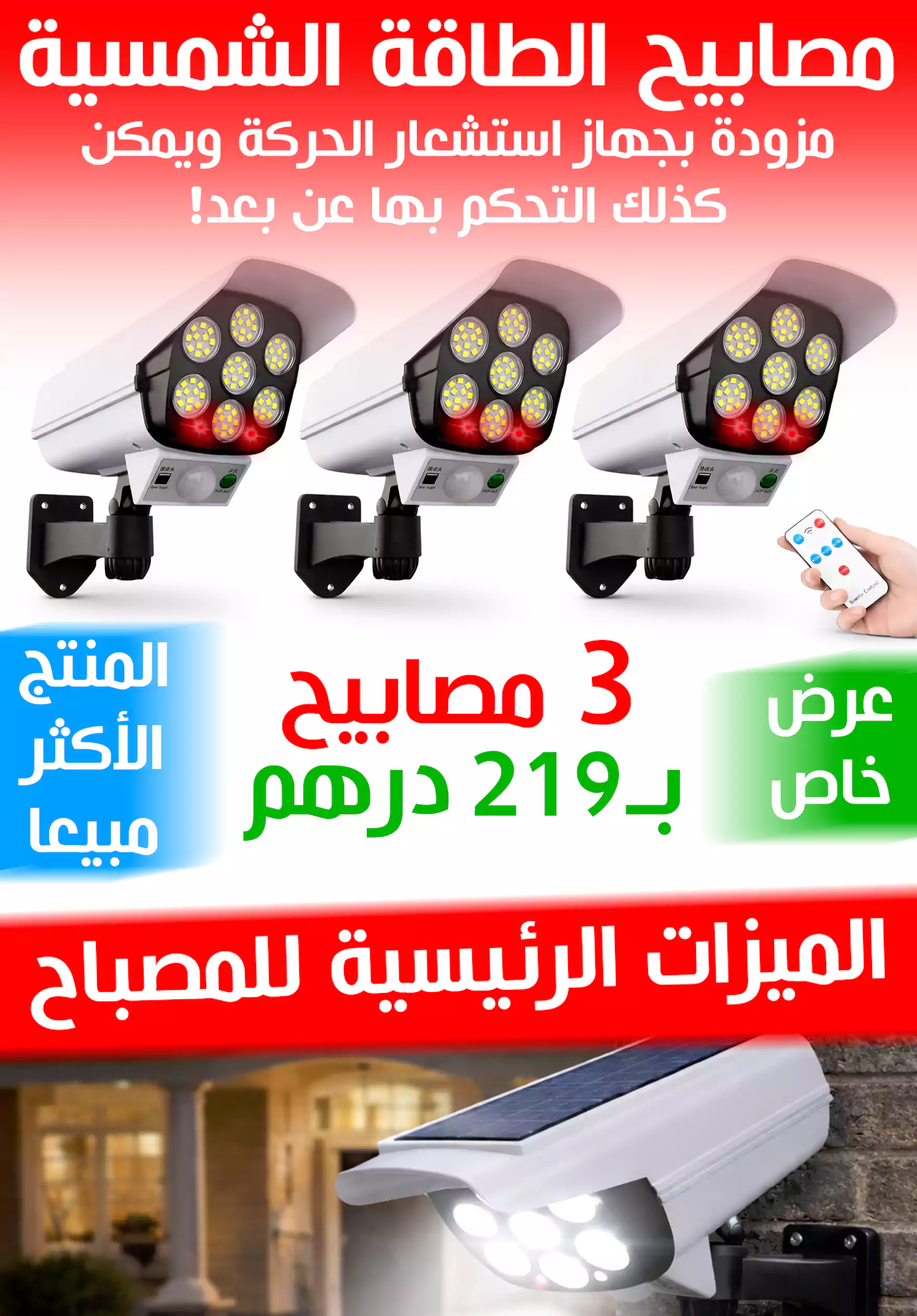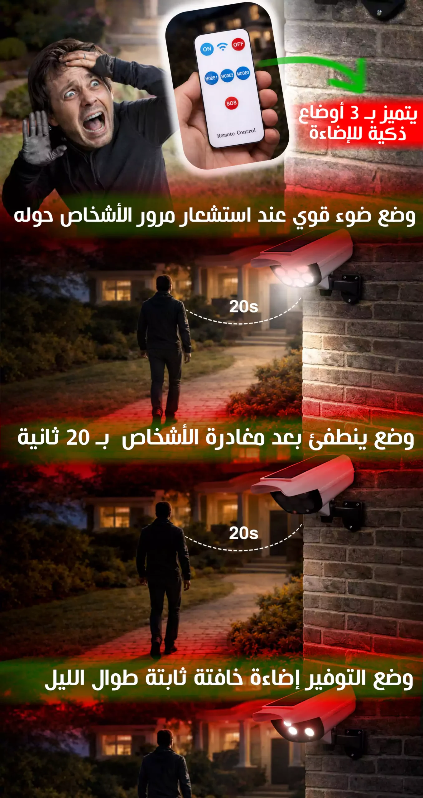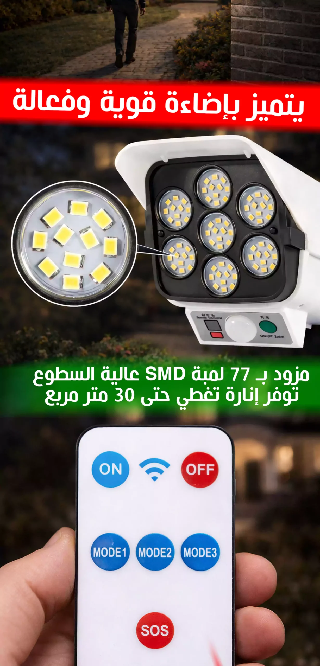 كشاف جداري بالطاقة الشمسية يحاكي كاميرا مراقبة